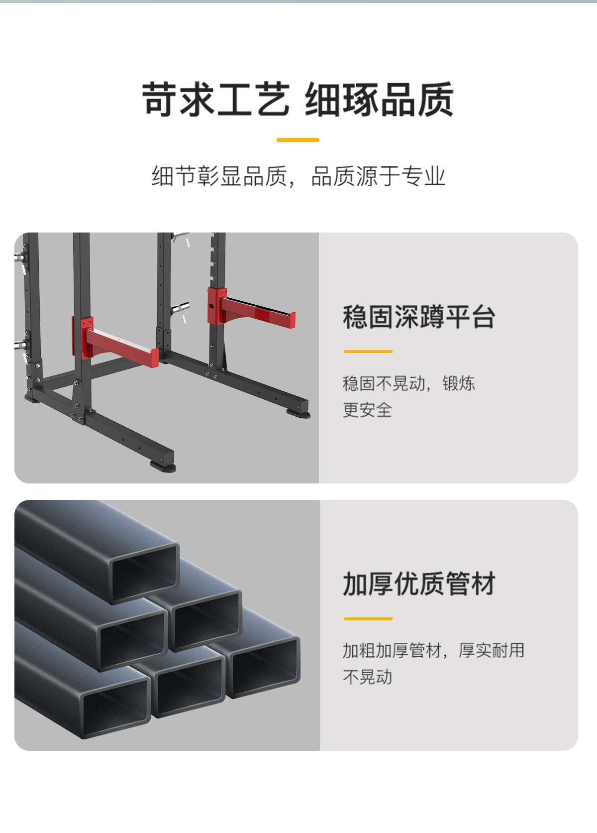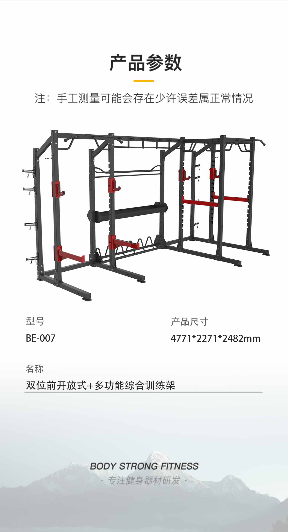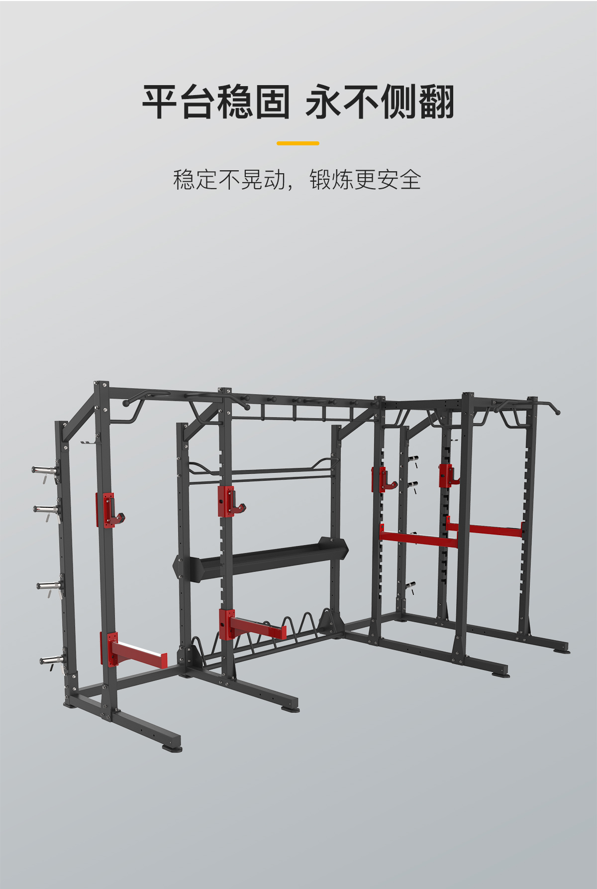 前开放式深蹲架功能模块+多功能深蹲架功能模块+独立单排收纳模块+多功能链接附件+球类储存链接附件+杠铃片储存链接附件